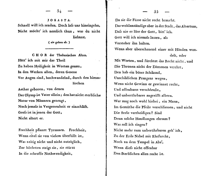 Die Trauerspiele des Sophokles. Übersetzt von Friedrich Hölderlin. Erster Band. Frankfurt am Main, 1804 Bei Friedrich Wilmans. Oedipus der Tyrann